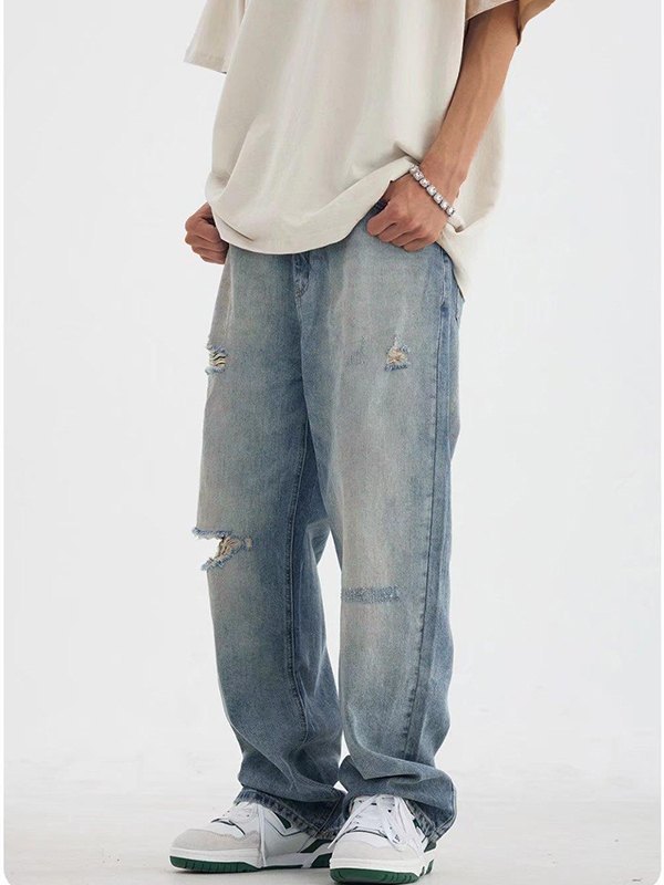 Asymmetrische, zerrissene Herrenjeans