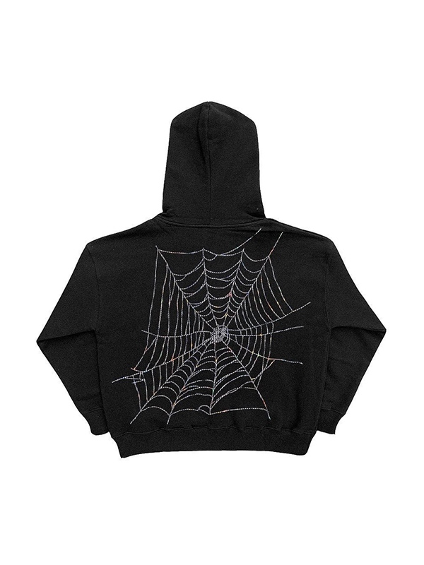 Übergroßer Kapuzenpullover mit Spinnennetz-Strasssteinen für Herren