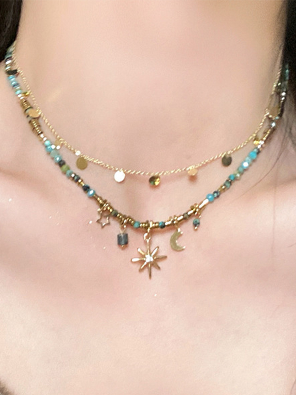 1 Stück Vintage Doppellagige Halskette mit Stern und Mond