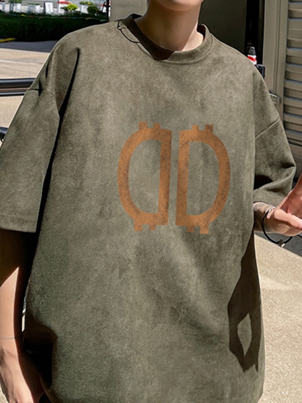 Übergroßes Kurzarm-T-Shirt aus Wildleder mit Buchstaben für Herren