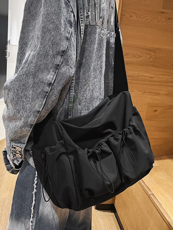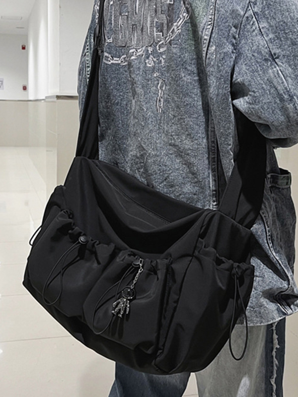 Details: Diese Umhängetasche Mit verstellbaren Schultergurten, Hosenschlitz mit mehreren Reißverschlüssen und funktionellen Taschen.