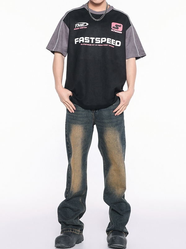 Schreibe die erste Bewertung für „Motorrad Unisex Gespleißtes Raglanärmel Übergroßes Kurzarm-T-Shirt“