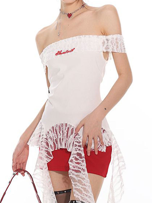 Schreibe die erste Bewertung für „One-Shoulder-T-Shirt mit Spitzen-Print und kurzen Ärmeln“