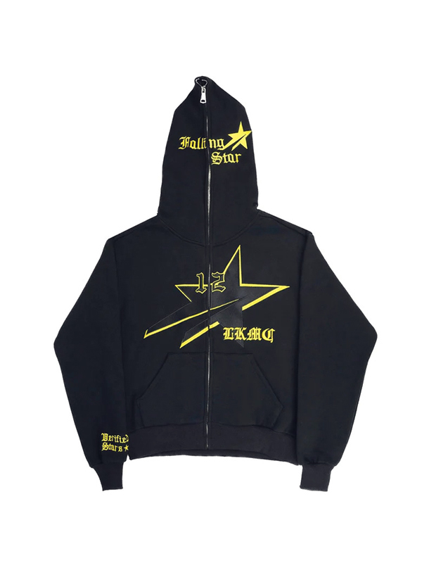 Übergroßer Herren-Hoodie mit hellem Aufdruck und durchgehendem Reißverschluss