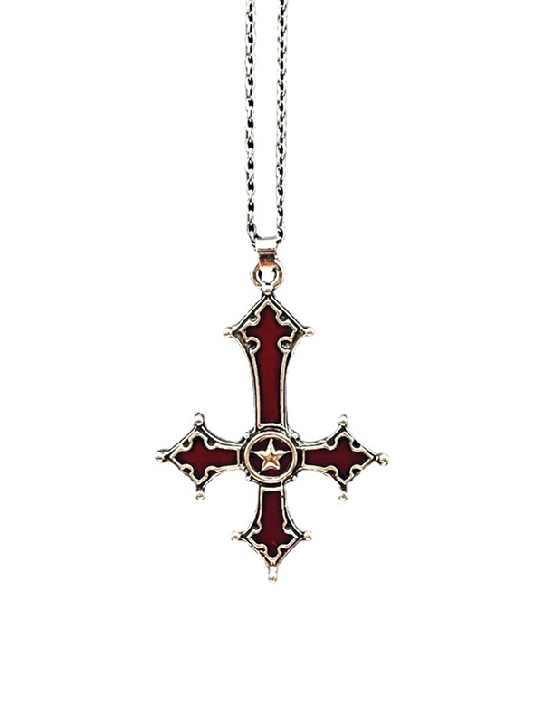 Blutrote umgekehrte Kreuz-Anhänger-Halskette