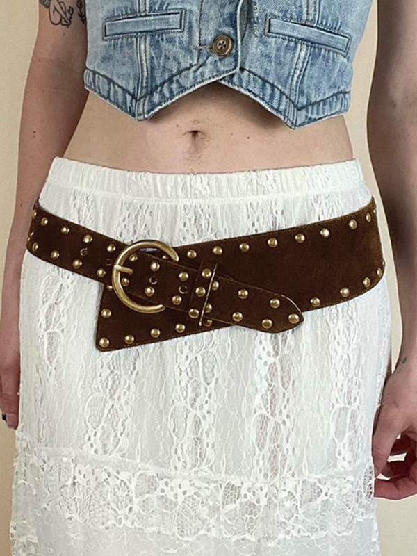 Einfarbiger Vintage-Gürtel mit Nietendekor und Schnalle