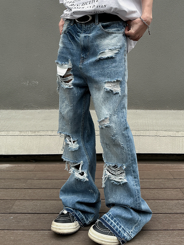 Lose Herrenjeans mit zerrissenem Kordelzug in grauer Waschung