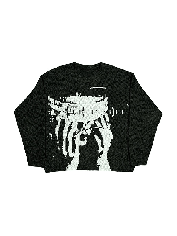 Herren-Strickpullover mit abstraktem Portrait-Print
