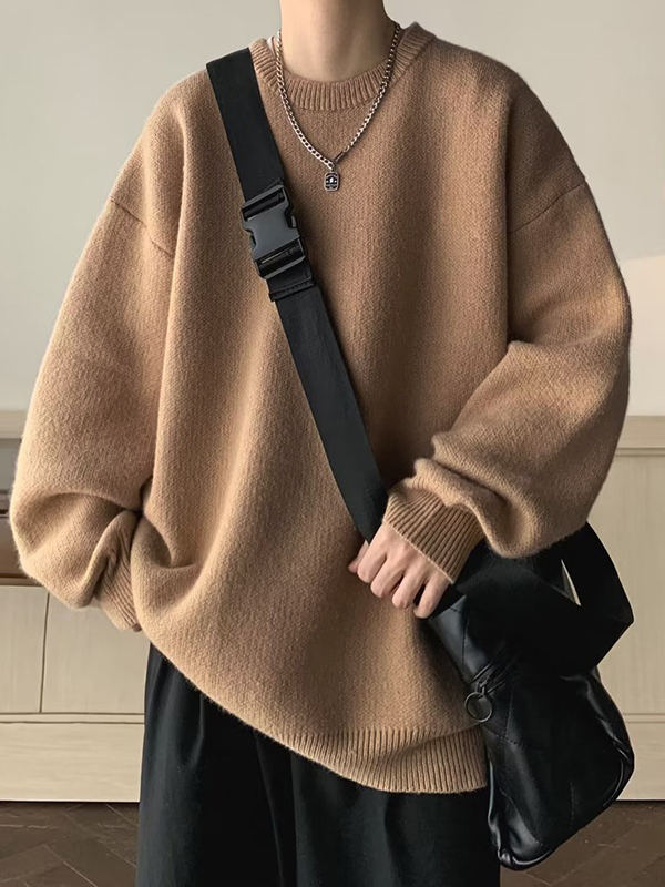 Einfarbiger Herrenpullover mit Rundhalsausschnitt