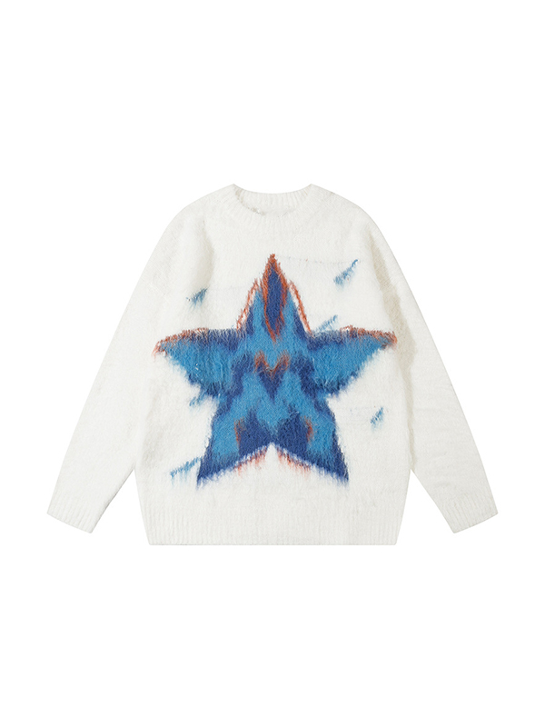 Herren-Rundhalspullover aus Jacquard mit Star-Graffiti-Motiv