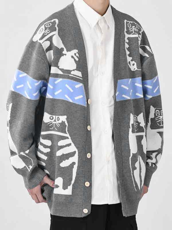 Herren-Pullover mit V-Ausschnitt und Cartoon-Print