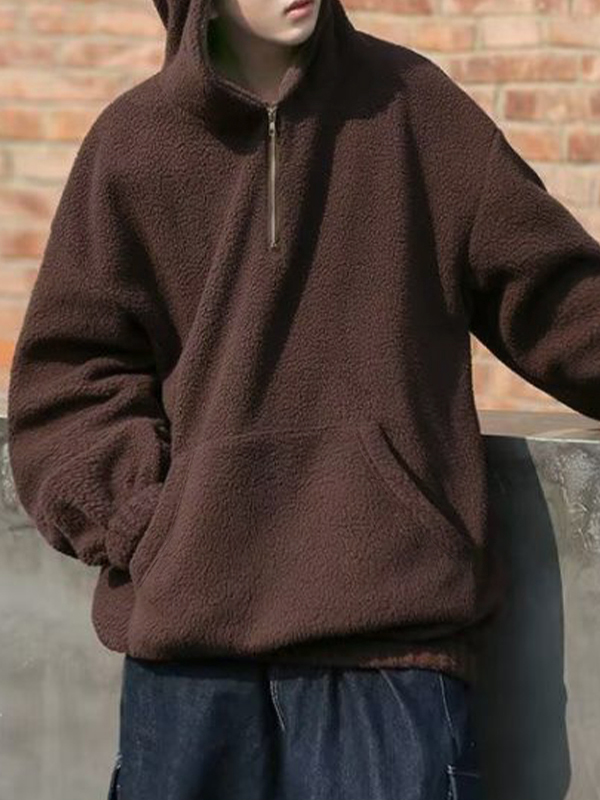 Herren-Hoodie aus fester Lammwolle mit halbem Reißverschluss und übergroßem Kapuzenpullover
