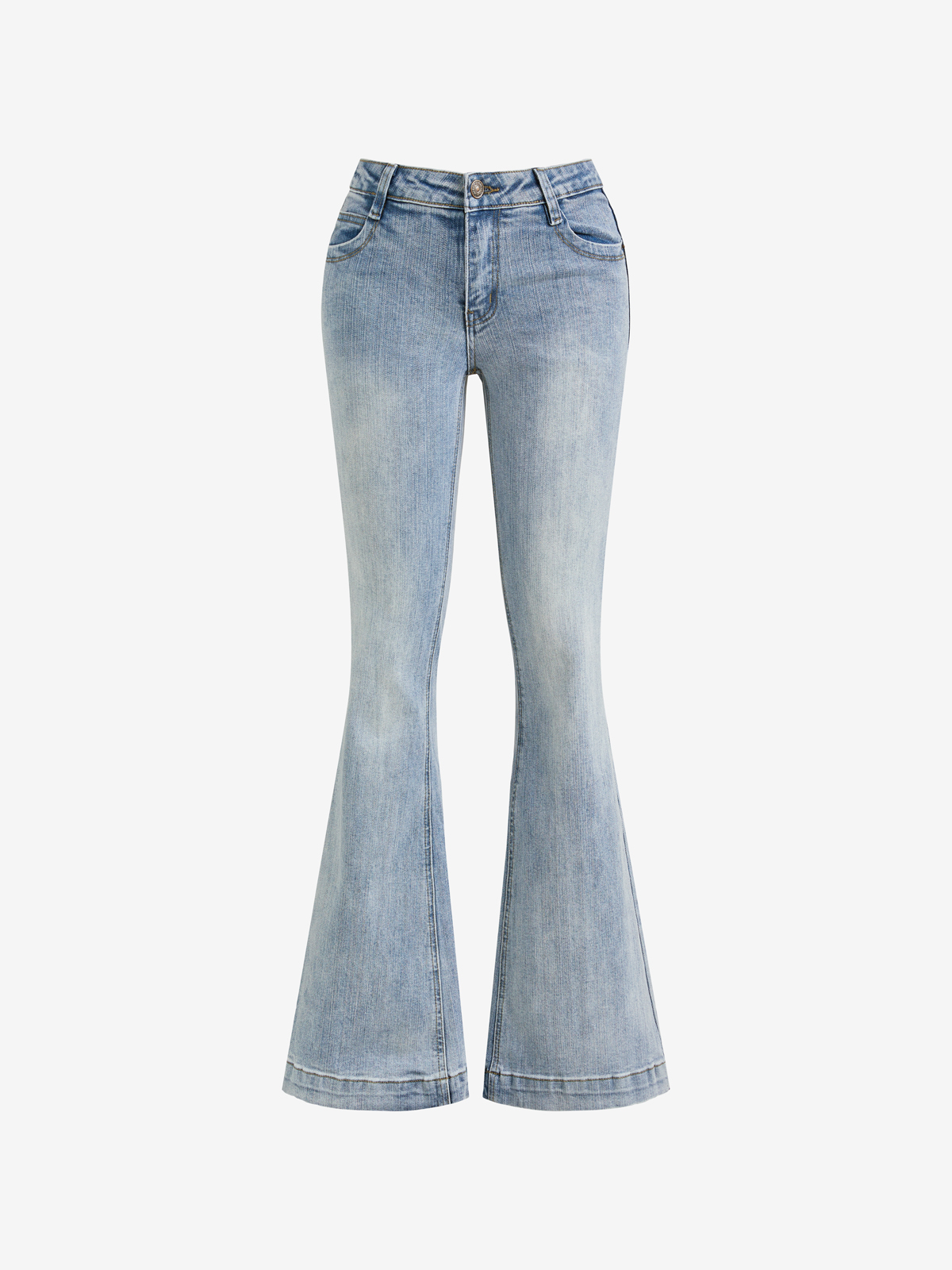 Bedruckte Jeans mit gespleißten seitlichen Taillenriemen
