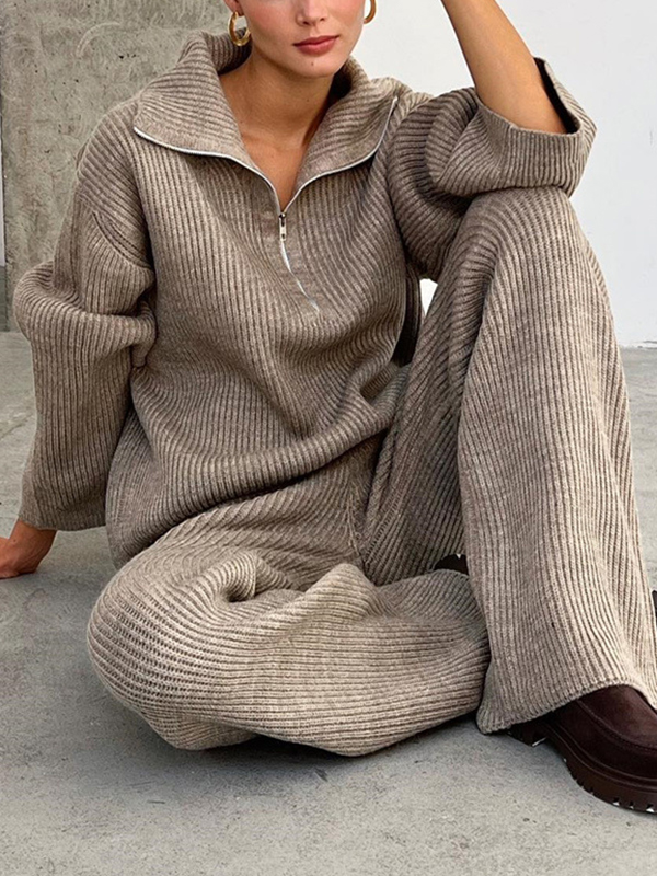Einfarbige Langarm-Strickwaren