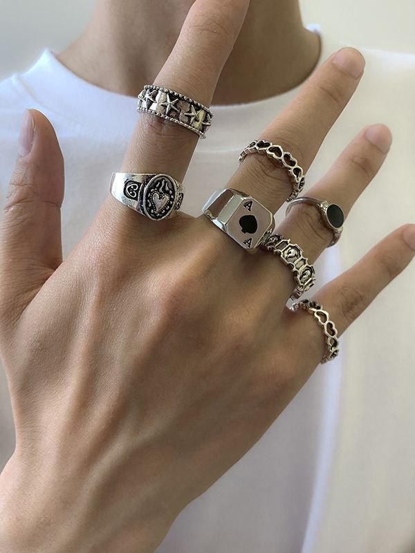 7-teiliger geometrischer Silberring für Herren