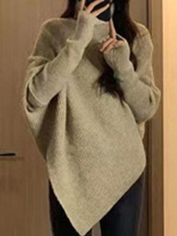 Pullover mit hohem Kragen und unregelmäßigem Saum