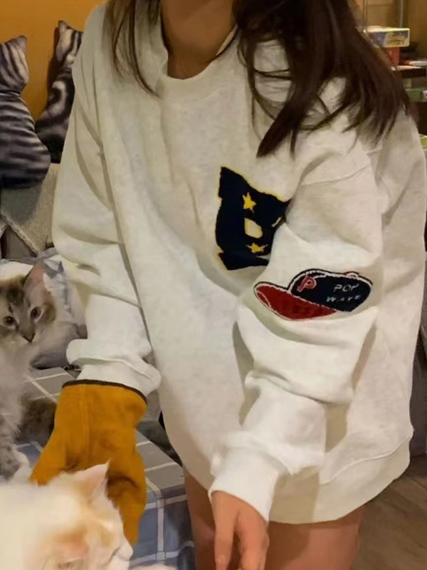 Einzigartiges Design: Das Sweatshirt verfügt über Vintage- und interessante Flockstickerei-Drucke, die es zu einem herausragenden Stück in jeder Garderobe machen.